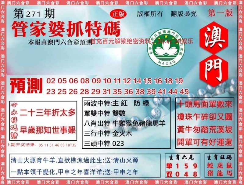 271期:九肖18码※开:鼠06错 | ||