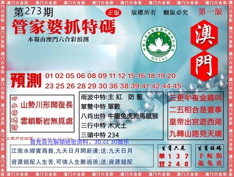 267期:九肖18码※开:牛29准 | ||